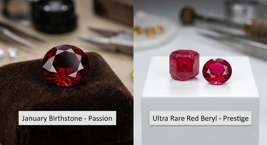 Key Takeaway: Red stones offer a range from the accessible and symbolic garnet to the ultra-rare and investment-focused red beryl.