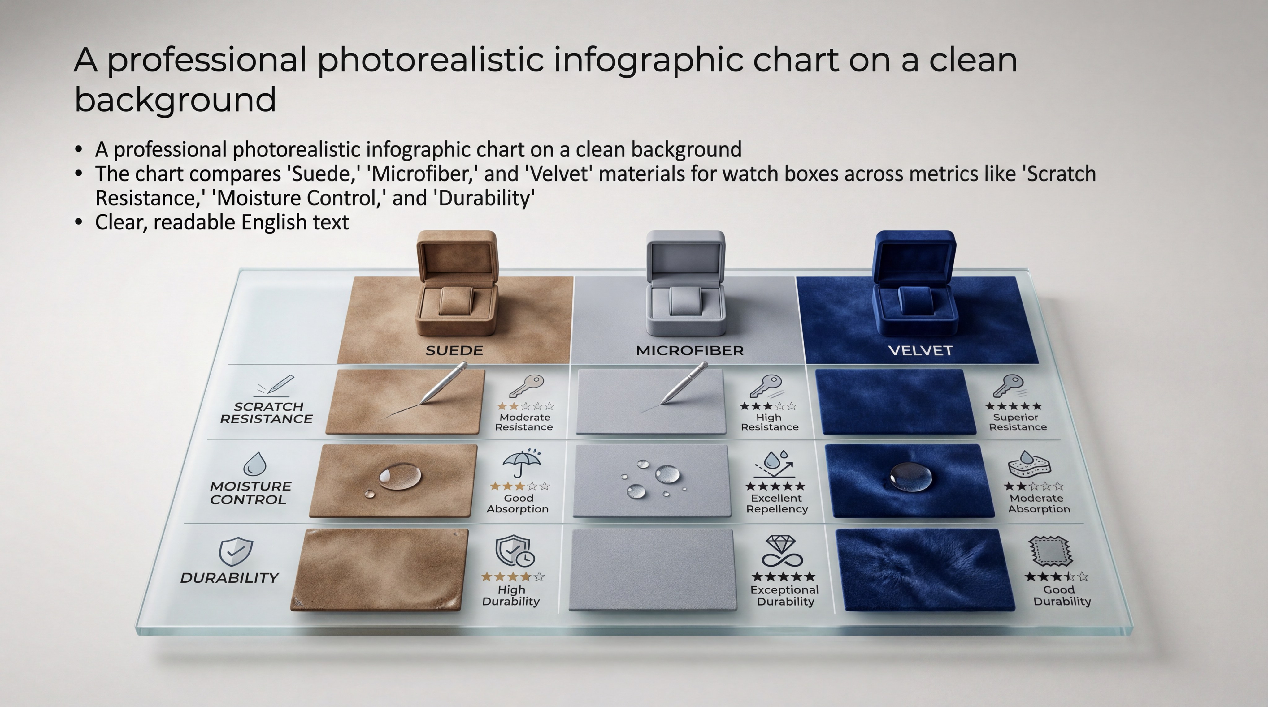 The lining must be made of non-reactive materials like microfiber or high-grade suede to avoid chemical reactions with watch oils. Many lower-quality boxes use cheap adhesives that can off-gas and damage vintage dials over time.