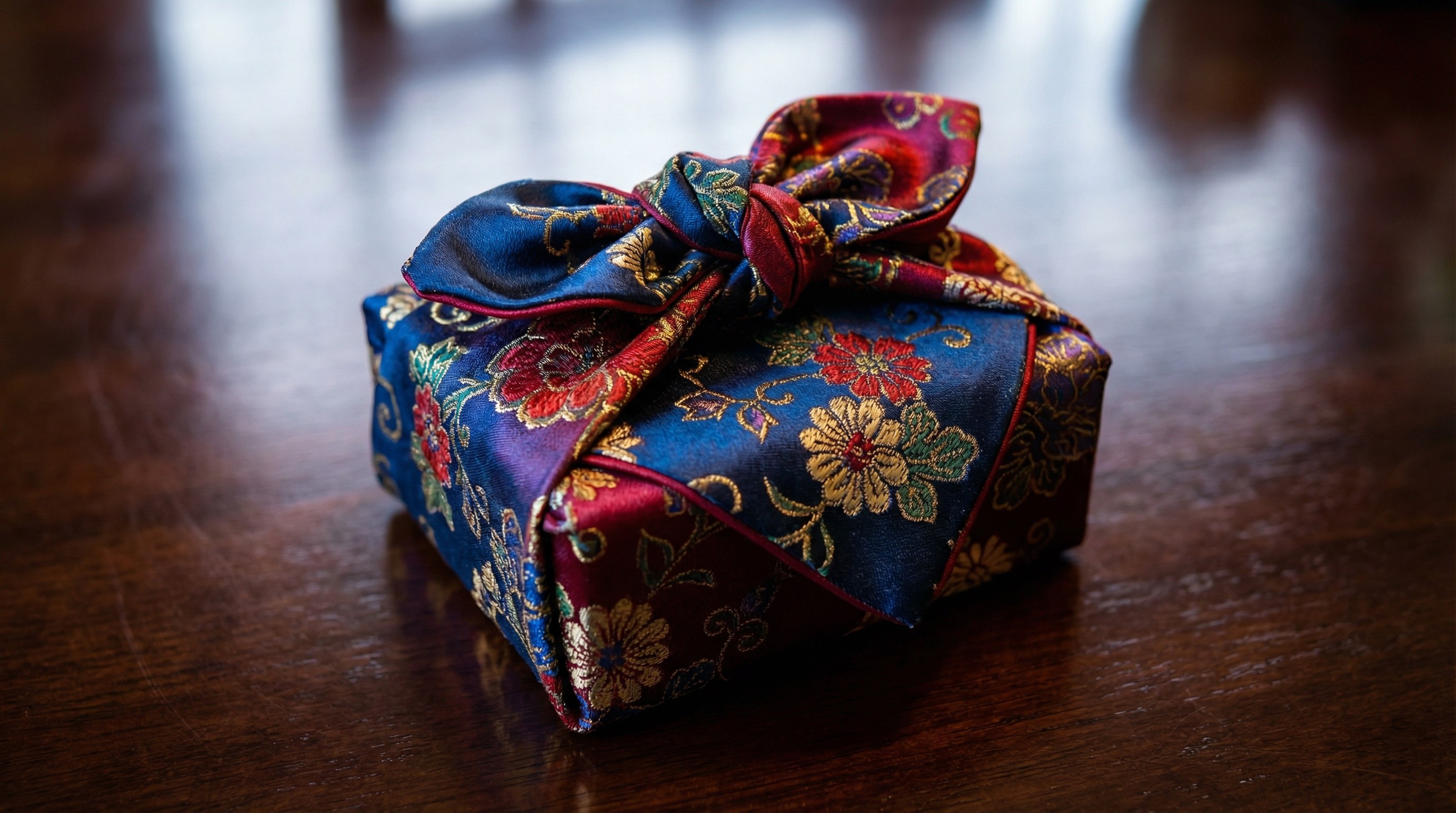 Traditional Furoshiki wrapping uses a fabric square or scarf as the outer layer, effectively giving your customer two gifts in one. This technique is particularly impressive for large bags or high-end jewelry sets that need a soft, protective touch.