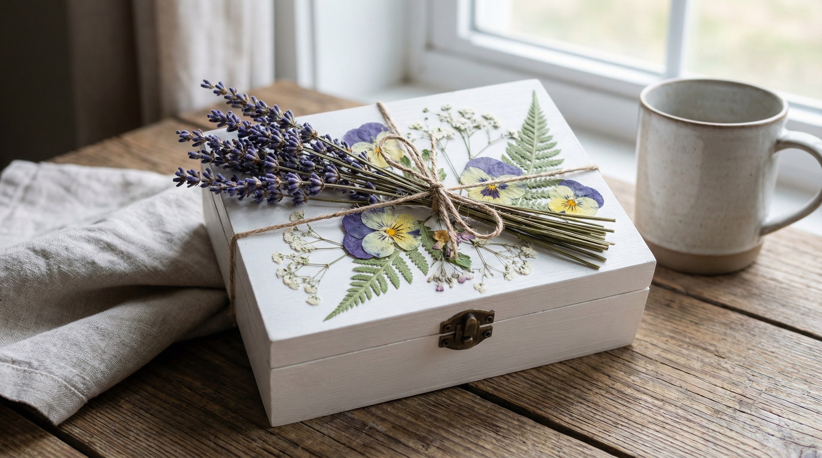 Botanical packaging involves using pressed flowers or leaves to decorate the exterior of your white jewelry boxes. This style is perfect for spring birthdays, weddings, or any romantic occasion.