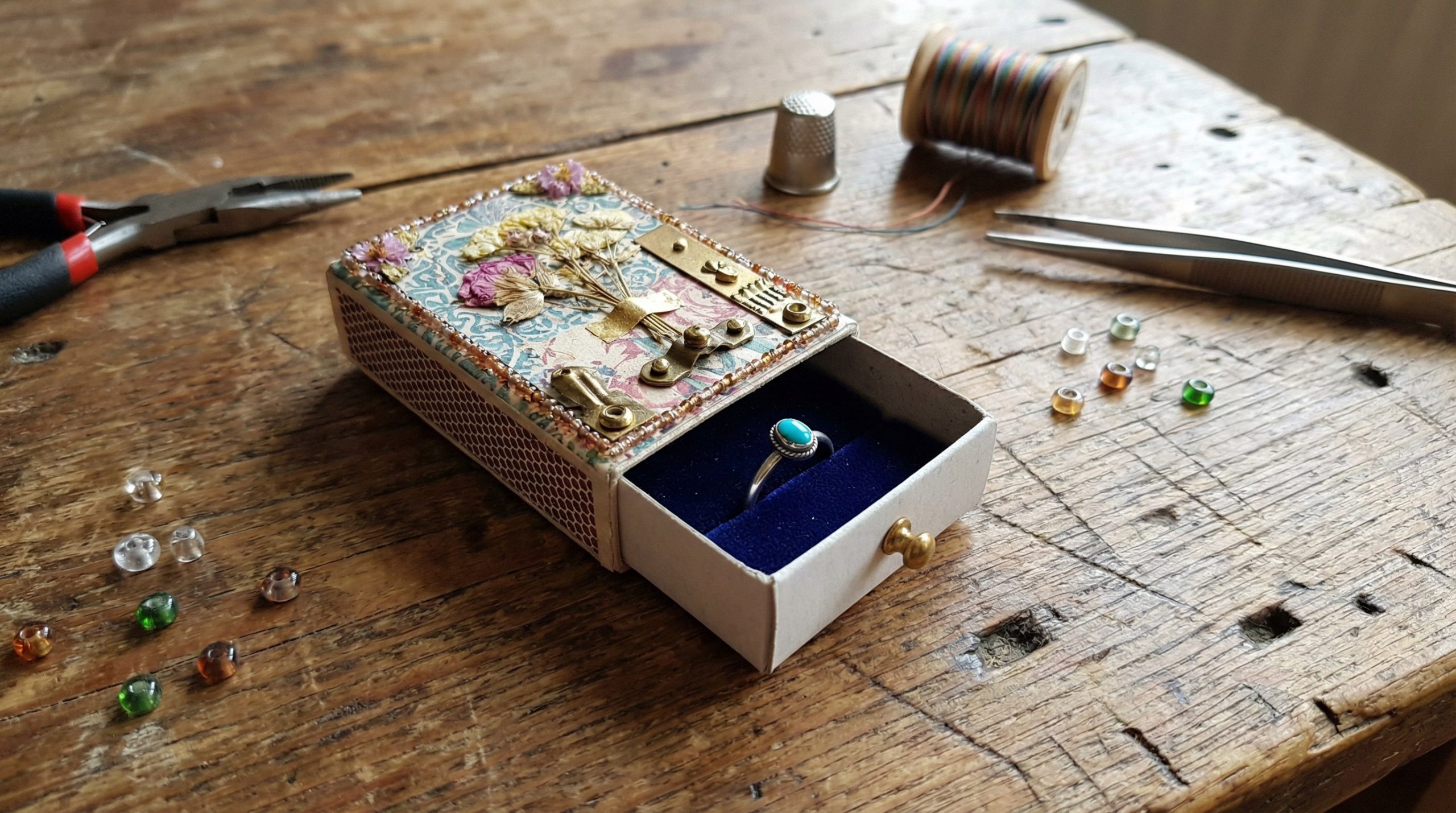 Upcycling small matchboxes into jewelry drawers is a brilliant way to package smaller items like rings or stud earrings. It provides a “sliding” reveal that is both charming and structurally protective.