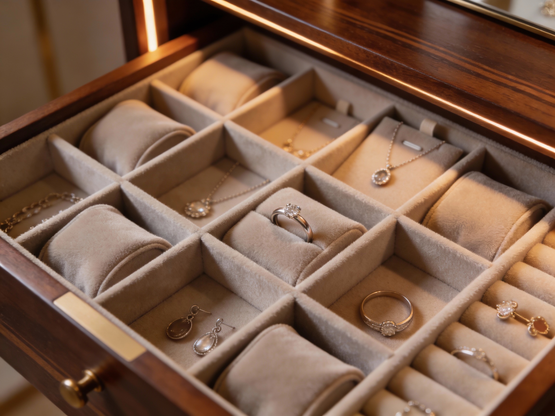Efficiently managing how to keep jewelry from tarnishing in jewelry box earring drawers involves using micro-compartments to isolate pairs and maintain their luster. Earrings often have intricate surfaces that are difficult to clean once tarnish sets in.