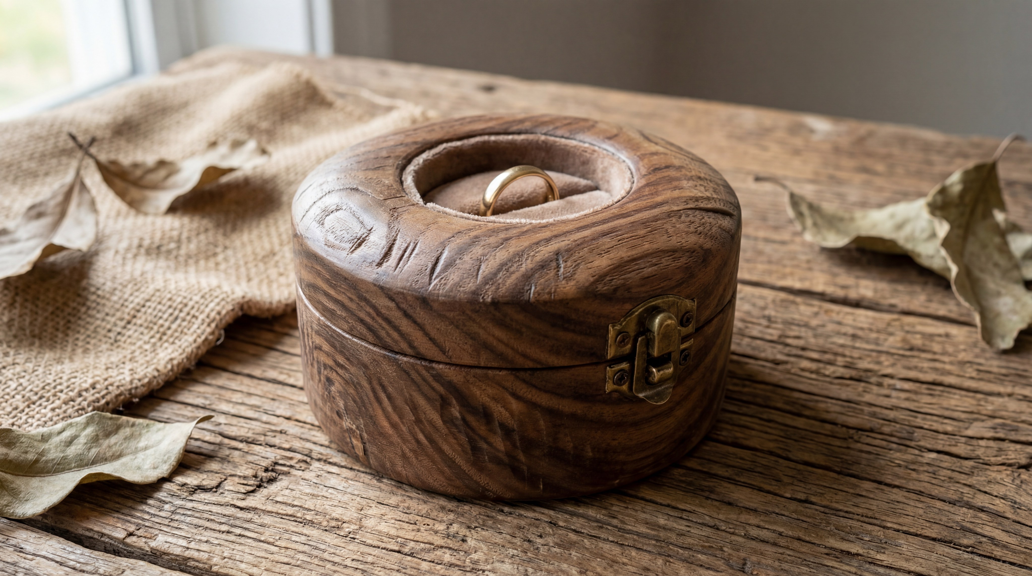 A faceted wooden vessel is the best ring box for couples who appreciate organic textures and artisan craftsmanship. These boxes use premium hardwoods to create a sculptural frame that highlights the natural beauty of the gemstone.