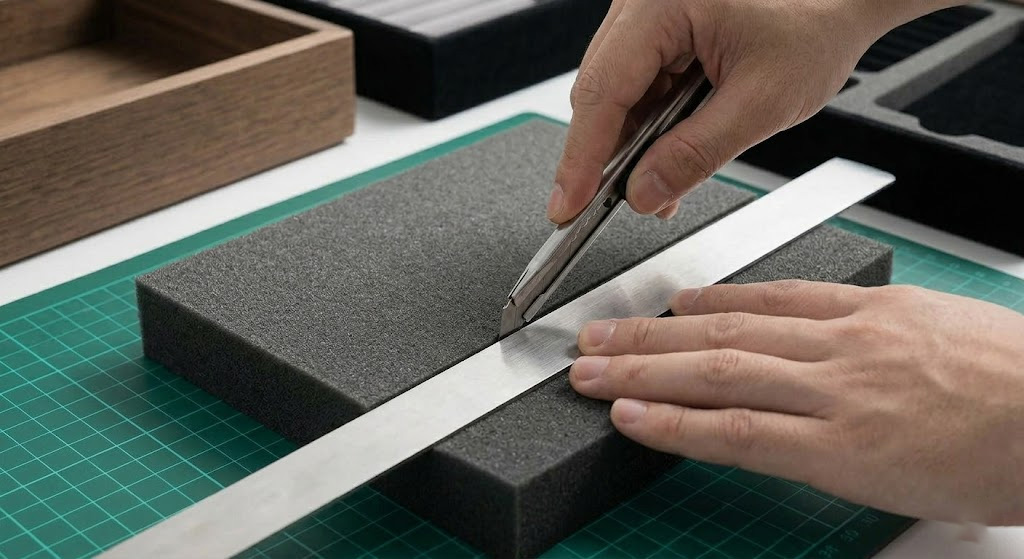 Precision cutting is achieved by using a sharp utility knife and a metal straightedge to ensure clean, vertical edges on your base materials. Learning how to make custom jewelry box inserts involves developing a steady hand to avoid fraying the edges of your foam or cardboard.