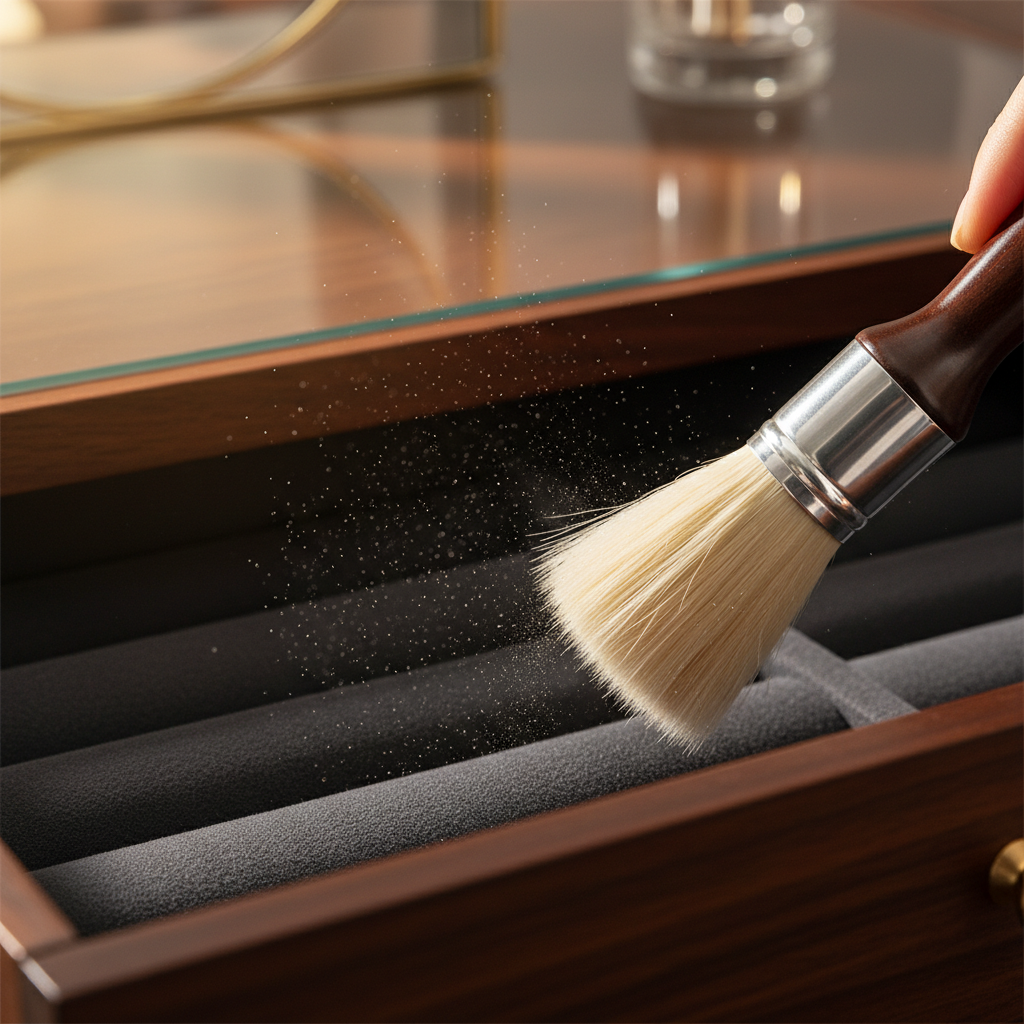 Key TakeawayUsing a “center-focused” dusting strategy and avoiding aggressive scrubbing prevents the felt from pilling and preserves the tightness of jewelry slots.