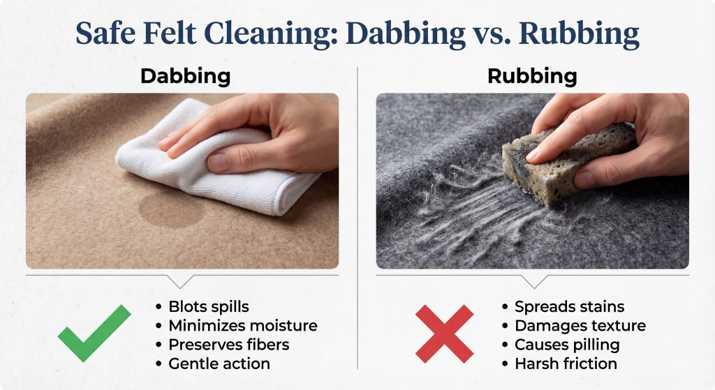 Key Takeaway: Moisture is the primary enemy of felt; you must use the absolute minimum amount to lift stains effectively.