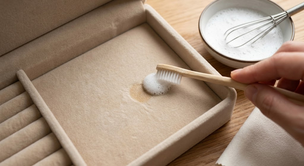Key Takeaway: Targeted spot cleaning with foam removes difficult stains without risking the overall shape of the jewelry box.