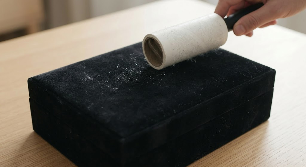 You remove dust from the surface by using a lint roller or a soft-bristle brush in a single, consistent direction. Mastering how to clean jewelry box velvet starts with this basic, non-invasive step to clear away loose debris.