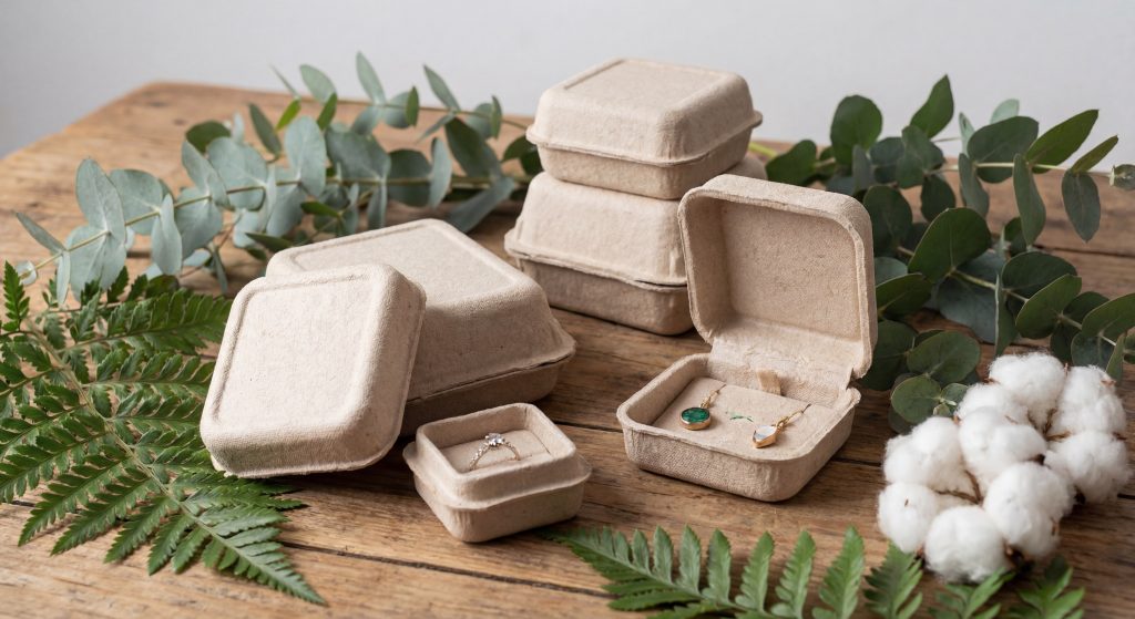 Think about this: molded pulp is no longer just for industrial use; it can be refined into elegant, minimalist jewelry containers. These boxes are fully compostable, aligning your brand with a zero-waste mission without sacrificing style.